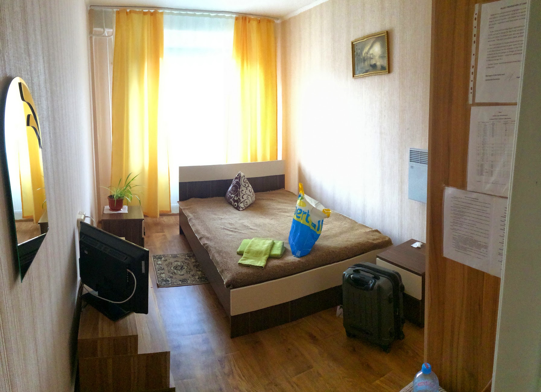 Desyatka is a modern hotel built using some sort of modular construction method. It is not the older, Soviet style hotel in Chernobyl. While the rooms are relatively simple (I assume the 80s decor is a more recent Ukrainian style), the bed is comfortable enough, the heating works well and has a TV. At least in my wing of the hotel, several rooms shared two bathrooms with showers. Pictures of the bathrooms are on the hotel's website.